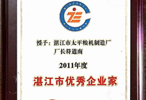 2011年度湛江市優(yōu)秀企業(yè)家榮譽牌匾2012年3月