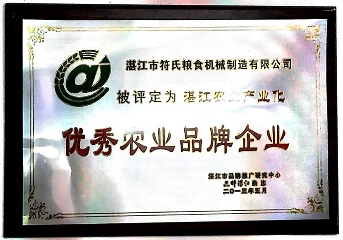 5 2013年被湛江市品牌推廣研究中心評定為湛江農業(yè)產業(yè)化“優(yōu)秀農業(yè)品牌企業(yè)”榮譽牌匾